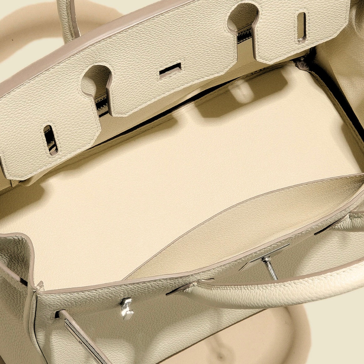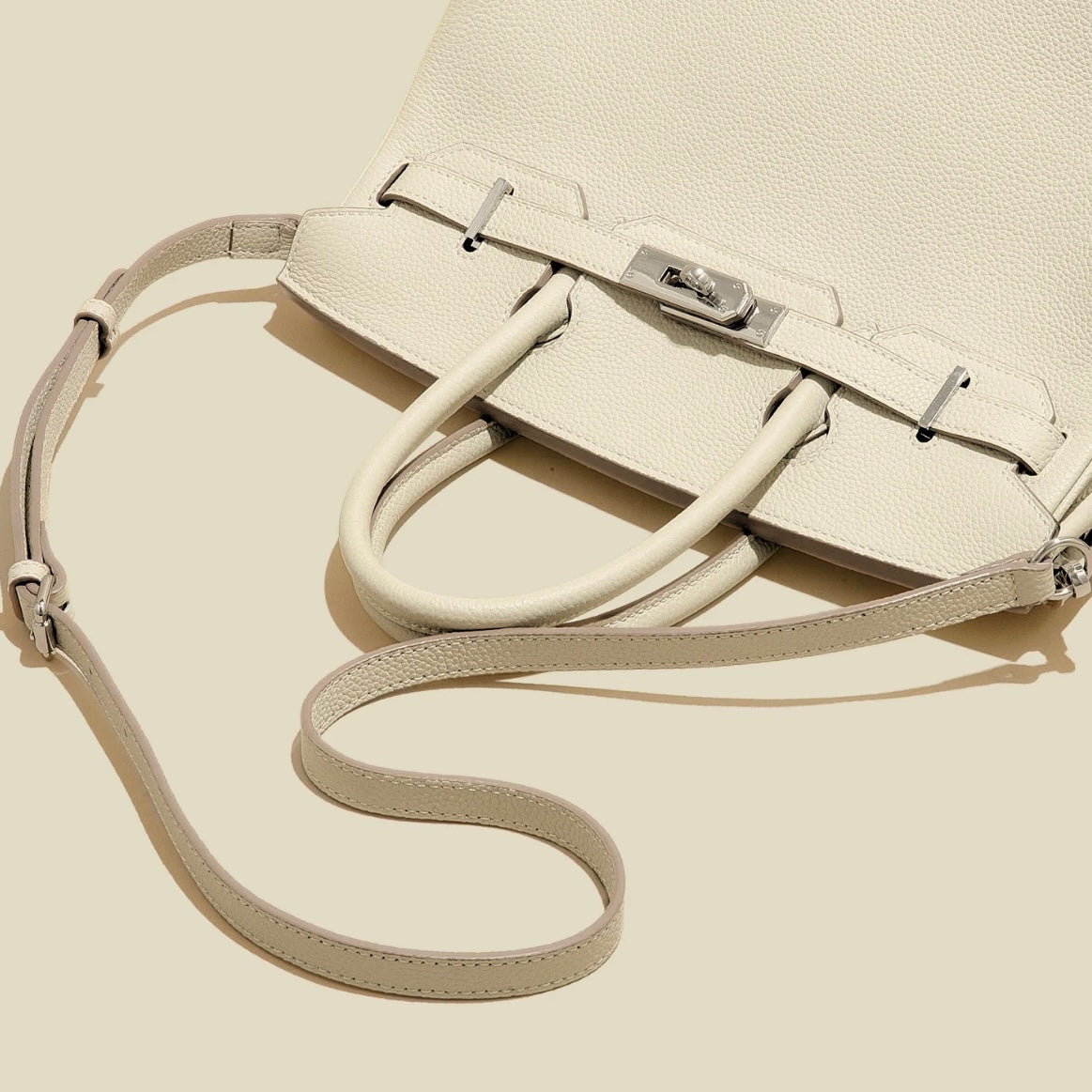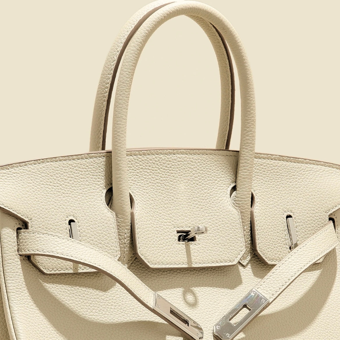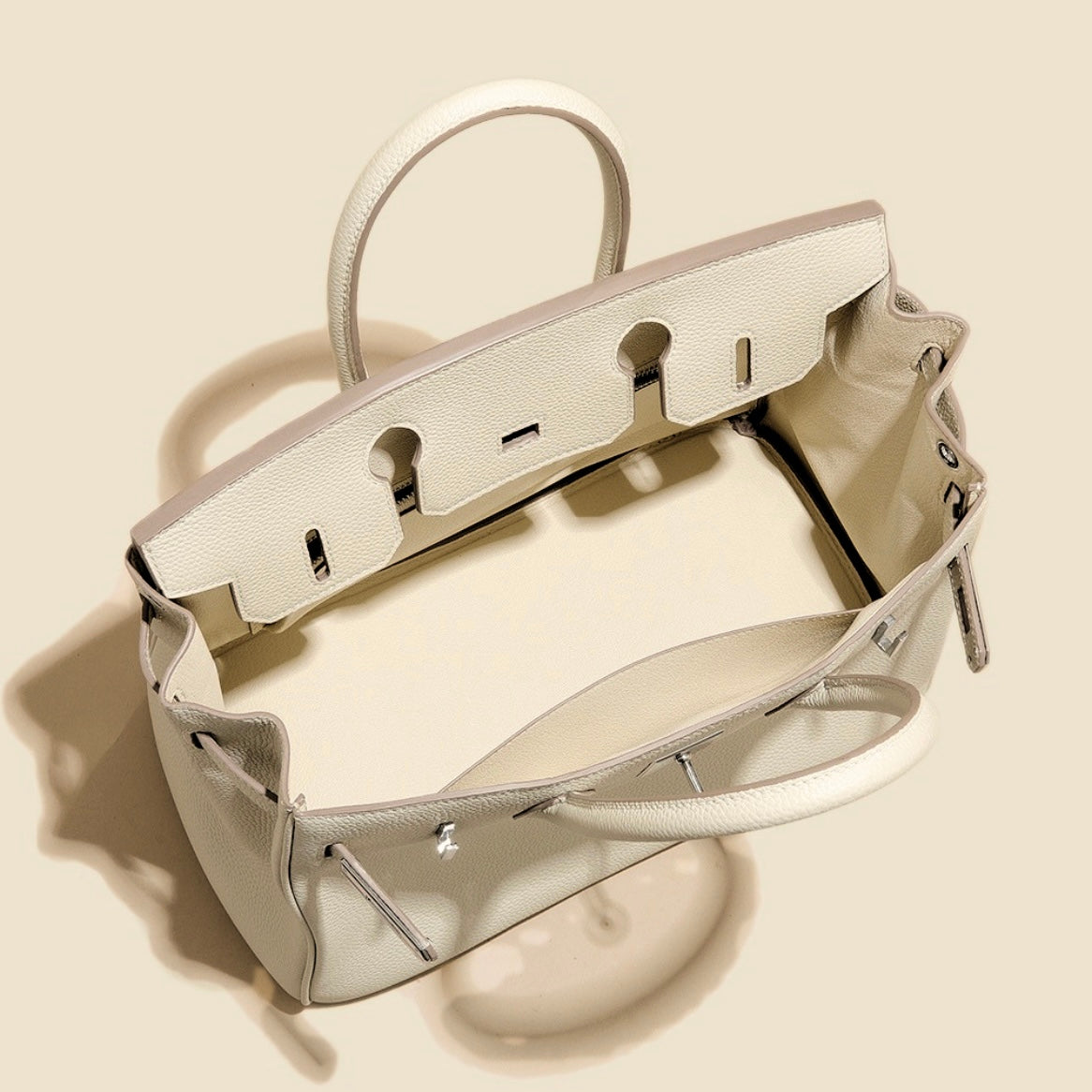Sac à main , un classique intemporel méticuleusement confectionné en cuir de veau de haute qualité. Fabriqué à la main avec amour, il est doté du verrou tournant emblématique et de poignées doubles roulées, présentant un mélange parfait sophistique et de pratique. À l'intérieur, découvrez un intérieur spacieux avec un compartiment principal, 1 poche zippée et 1 poche coulissant