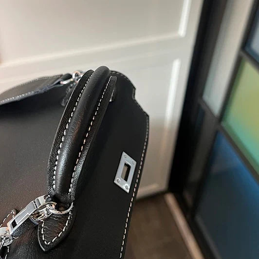 Offrez-vous une sophistication intemporelle avec ce sac à main en cuir de veau avec ssa bandoulière , qui rappelle un design classique. Fabriqué avec précision, il présente une silhouette structurée, des matériaux de haute qualité, une attention méticuleuse aux détails et une poche intérieure pratique pour porte-cartes. Élevez votre style avec cette pièce emblématique qui allie harmonieusement élégance et fonctionnalité.