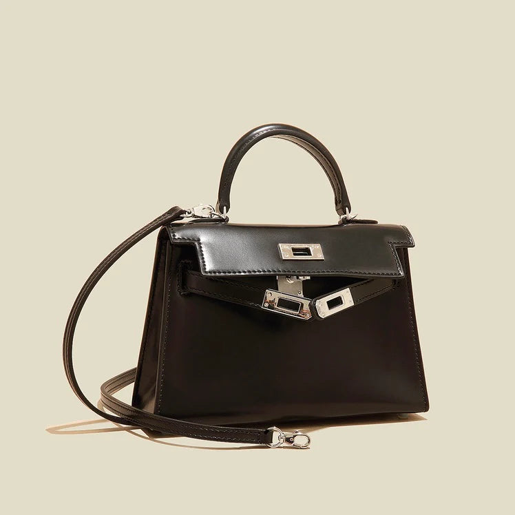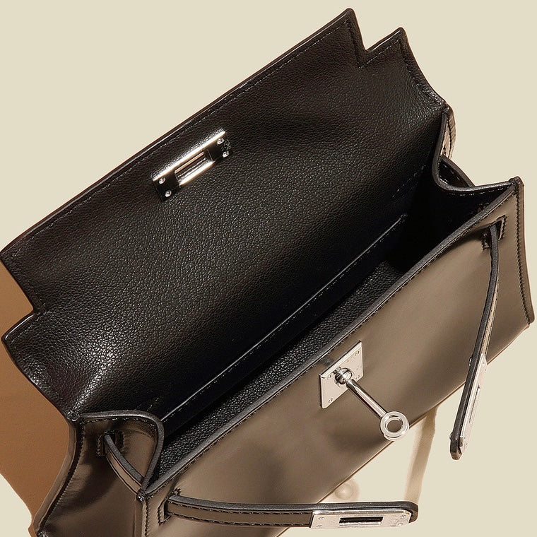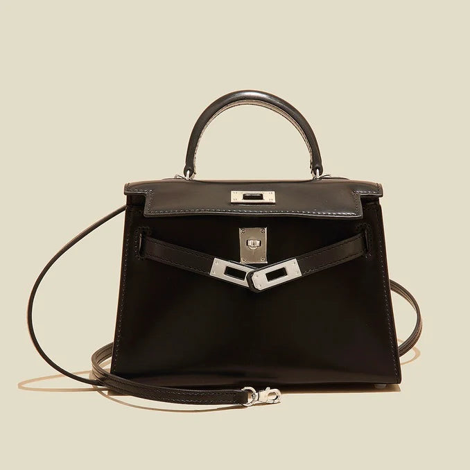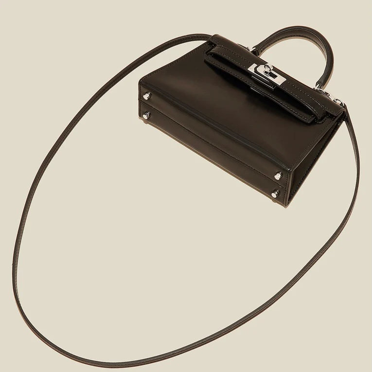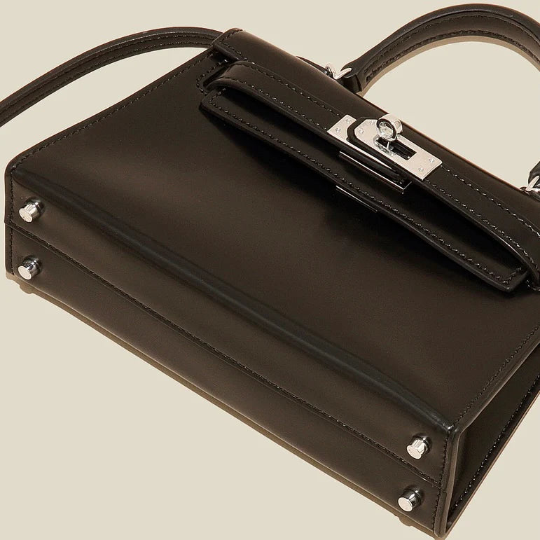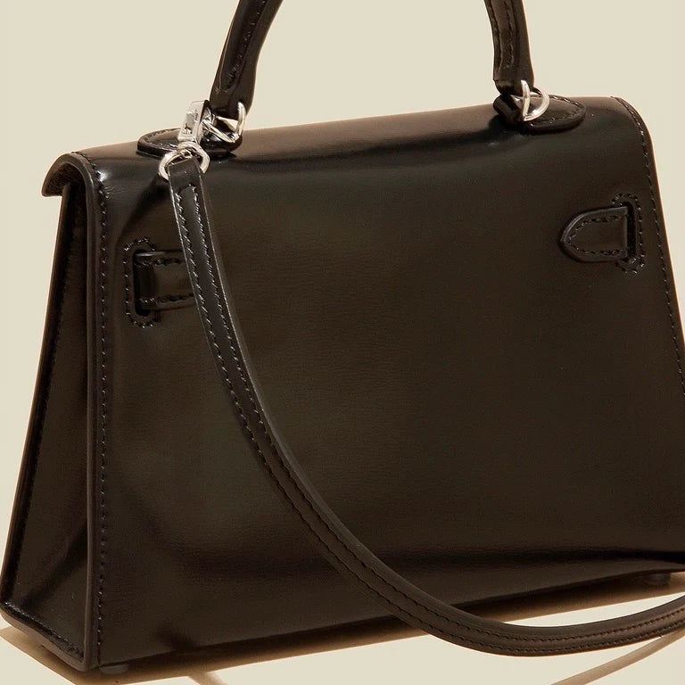 Offrez-vous une sophistication intemporelle avec ce sac à main en cuir de veau lisse avec sa bandoulière qui rappelle un design classique. Fabriqué avec précision, il présente une silhouette structurée, des matériaux de haute qualité, une attention méticuleuse aux détails et une poche intérieure pratique pour porte-cartes. Élevez votre style avec cette pièce emblématique qui allie harmonieusement élégance et fonctionnalité.