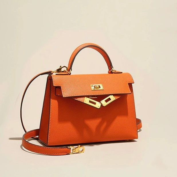 Offrez-vous une sophistication intemporelle avec ce sac à main en cuir de veau avec sa bandoulière , qui rappelle un design classique. Fabriqué avec précision, il présente une silhouette structurée, des matériaux de haute qualité, une attention méticuleuse aux détails et une poche intérieure pratique pour porte-cartes. Élevez votre style avec cette pièce emblématique qui allie harmonieusement élégance et fonctionnalité.
